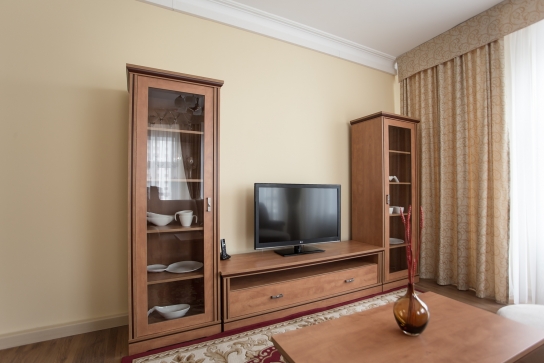 Для вашего удобства в квартирах есть Wi-Fi и телевизор с доступом к российским и международным каналам, телефон.